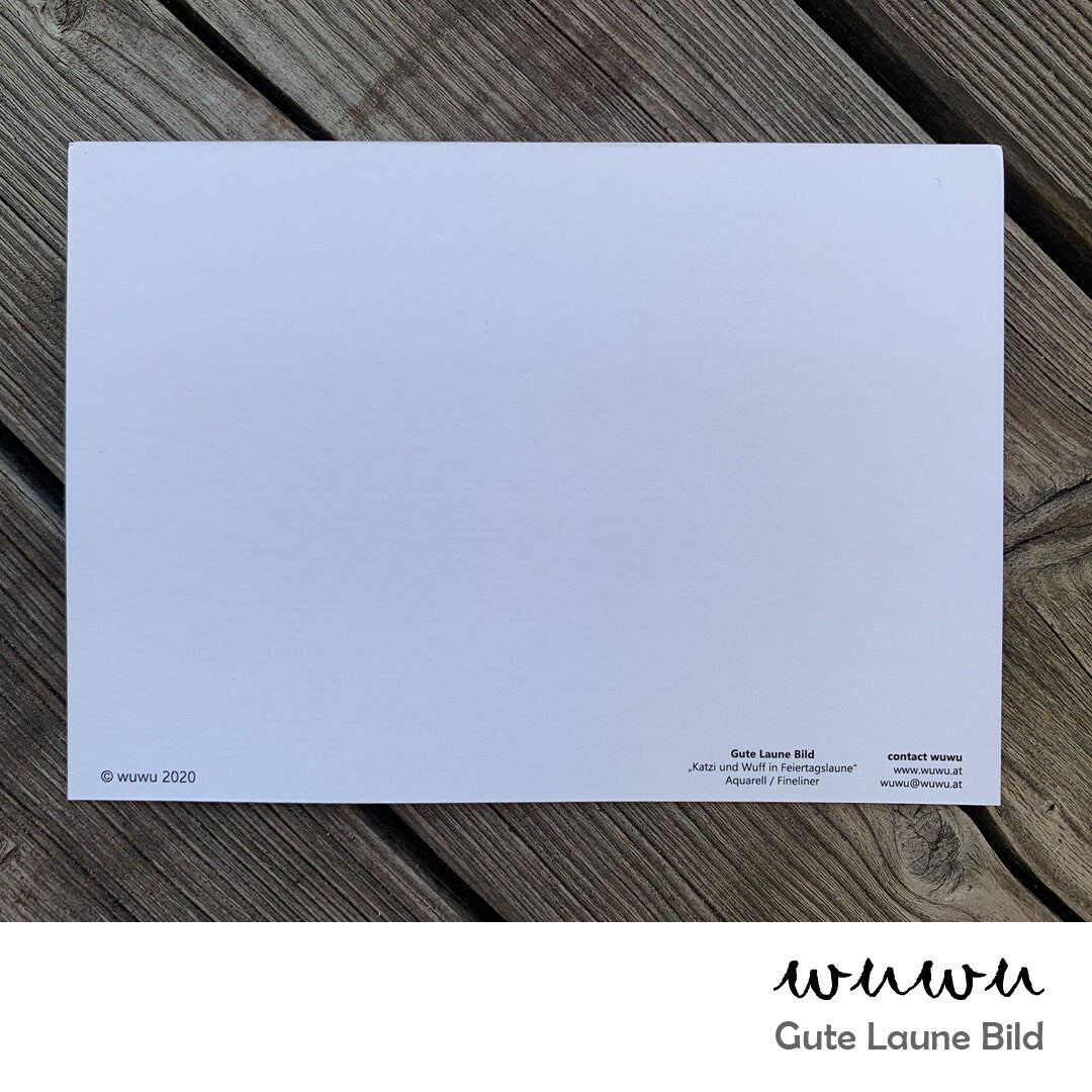 Diese liebevoll gestaltete Grußkarte ist ein Druck eines original wuwu Gute Laune Bildes von mir. Größe: A6 (10,5x14,8cm) Material: Hochwertiger Qualitätsdruck auf 300g Postkartenkarton. Die Rückseite ist beschreibbar. Bei Fragen kannst du dich gerne per E-Mail an wuwu@wuwu.at bei mir melden - ich freue mich auf deine Nachricht! Ich wünsche dir viel Spaß beim Verschenken oder auch Behalten deiner neuen wuwu Karte! Alles Liebe wuwu / Christine Achtung: - Das Design unterliegt dem Urheberrecht und sind Eigentum von wuwu