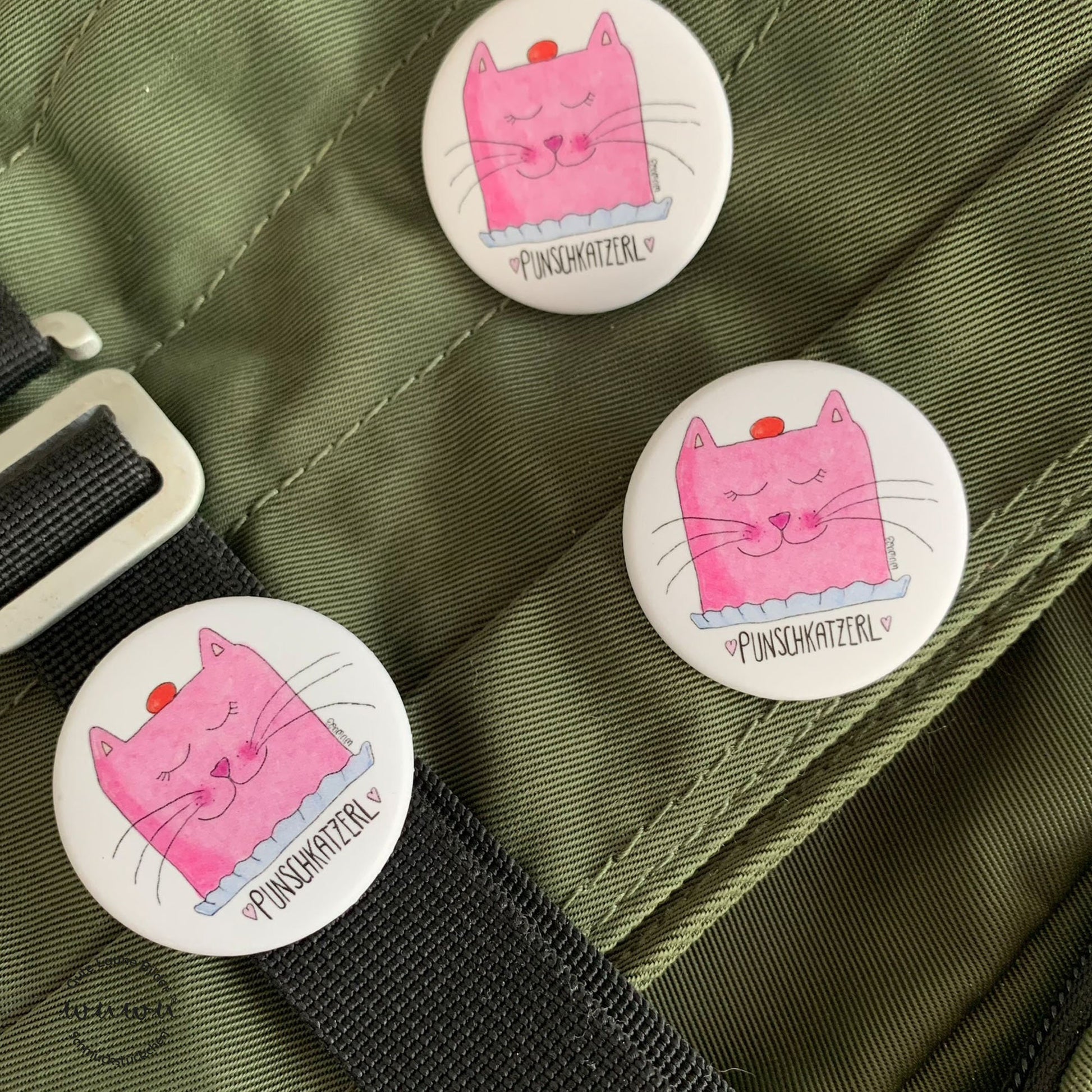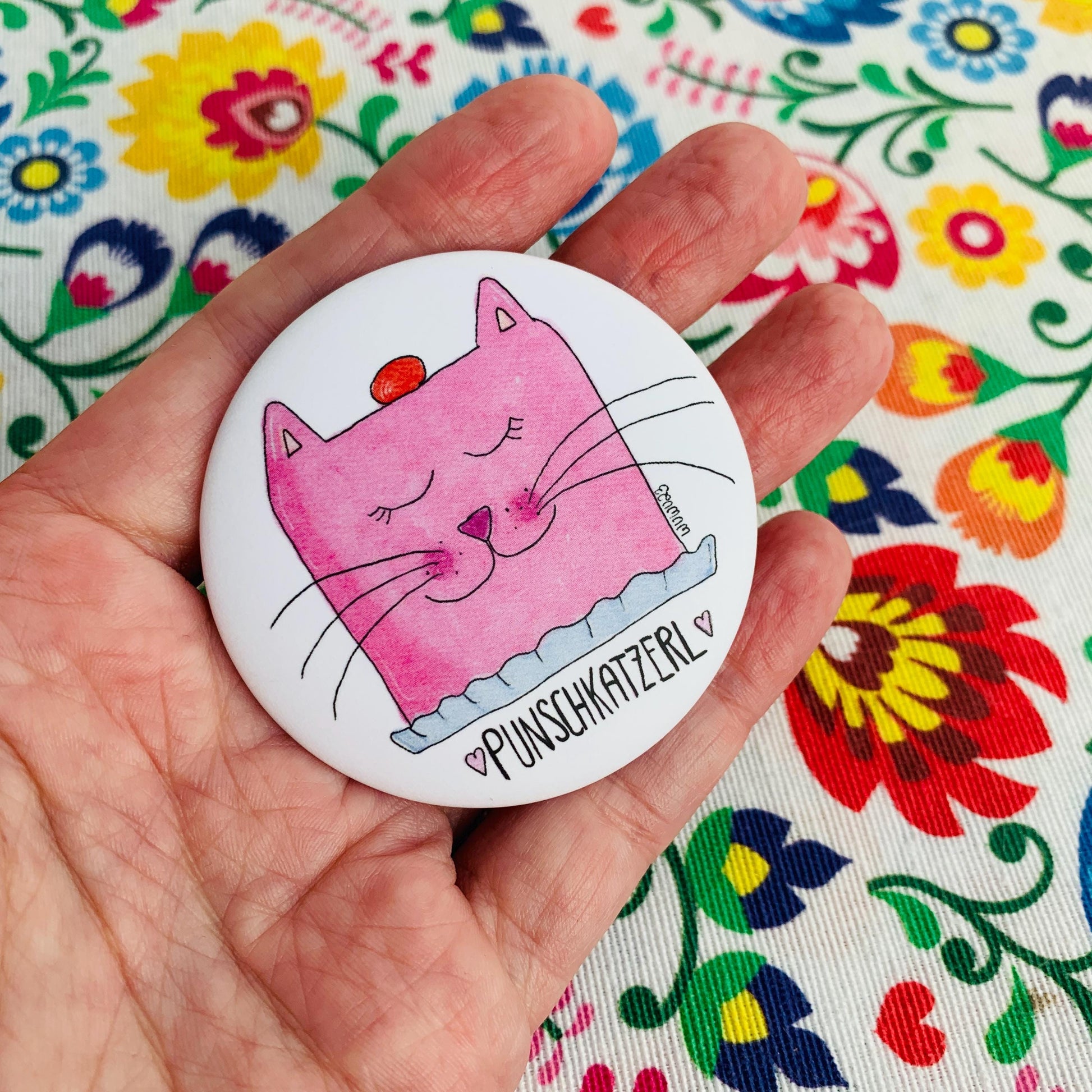 Anstecker | Pin | Button Katze Punschkatzerl Punschkrapferl Punschkrapfen Katzen Mehlspeise Wien