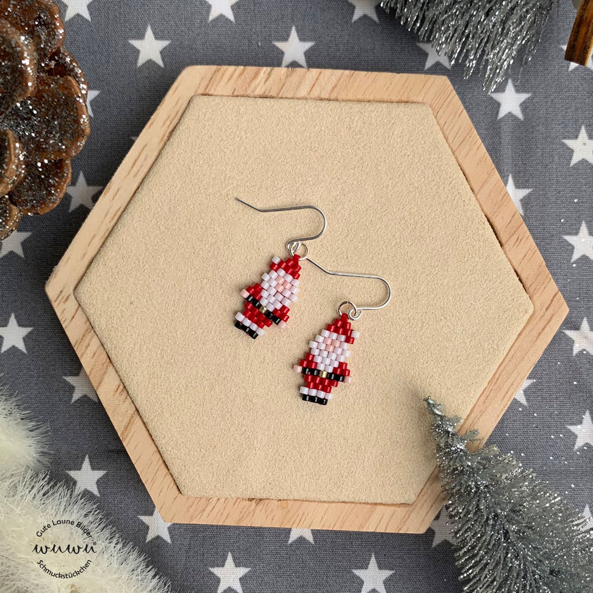 Ich habe pro Weihnachtsmann 54 winzige Perlen verarbeitet, dh 108 Perlchen für deinen ganz speziellen wuwu X-Mas Ohrschmuck.